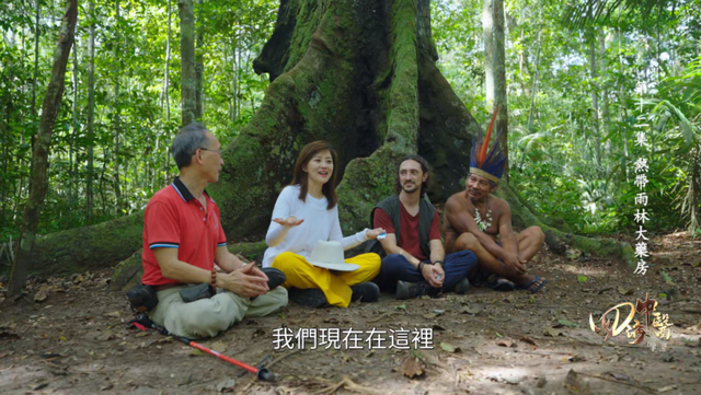 纪录片《四海中医》第一季巴西站,赵中振教授(左1)在亚马逊雨林与当地原住民交流。