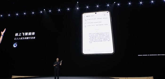 (图源:发布会现场)开发者永远是鸿蒙系统最坚定的基石,码上飞智能体和DevEco CodeGenie超级助手的出现,大幅降低了鸿蒙应用开发的难度,甚至要让每个人都能成为鸿蒙应用的开发者。不懂编程的普通人,或许难以用这些工具开发出复杂的应用,但可以尝试通过提示词结合自己的需求开发一些小游戏或简单的应用,加快鸿蒙系统丰富生态的速度。