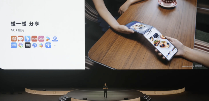 (图源:发布会现场)跨设备办公时,手机碰一碰电脑,即可将相册中的图片插入电脑端运行的WPS中,也可以通过碰一碰,将手机平台的视频素材上传至电脑平台的剪映软件,方便用户进行创作,还有100+应用支持音乐、小说等内容跨设备无缝流转。