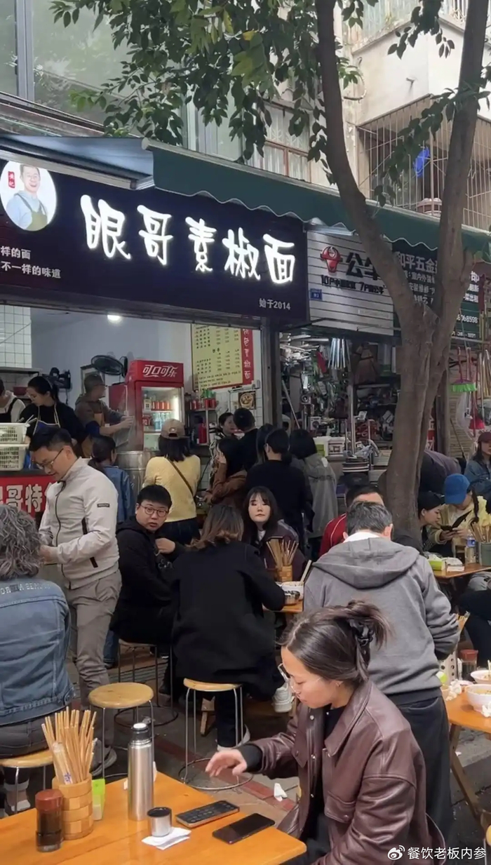 最近,成都桂王桥南街的一家面馆——眼哥素椒面有了点爆火的烦恼。店面不大,里里外外都坐满了人,有不少食客拖着行李箱来打卡。