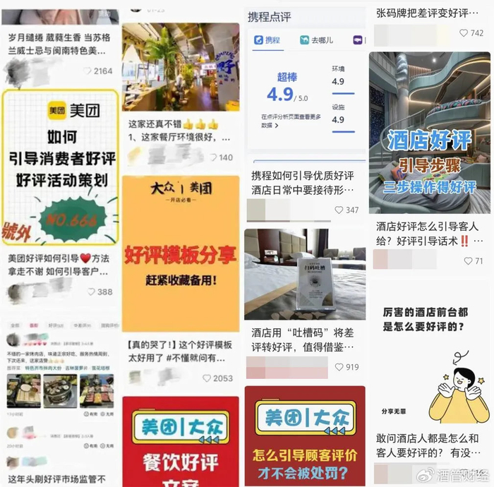 小红书上就有很多引导好评“话术”,里面有很多帖子教酒店员工怎么向顾客要好评。