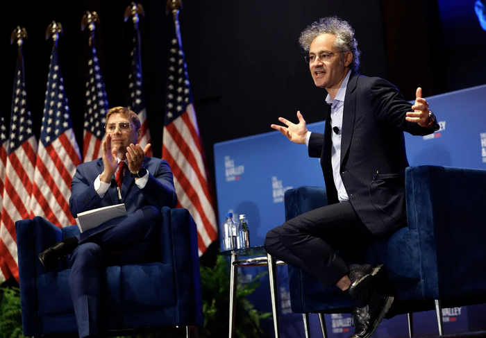 当地时间2025年4月30日,帕兰提尔CEO Alexander Karp在华盛顿发表演讲 图源:视觉中国当然,任何行业都不可能是铁板一块,亦有“识时务”的科技公司拿到了更多的政府订单,以《指环王》中“真知晶球”命名的帕兰提尔(Palantir)被《卫报》称为“世界上最恐怖的公司”,极力支持移民执法和AI政府审查,并在话语上建立了一套“科技共和国”的替代叙事。帕兰提尔CEO亚历山大·卡普(Alexander Karp)甚至亲自呼吁,科技界需要回归“曼哈顿计划”时代的爱国主义精神,重新建立科技产业与政府之间的合作关系,以确保美国在未来由人工智能主导的竞争中占据优势。