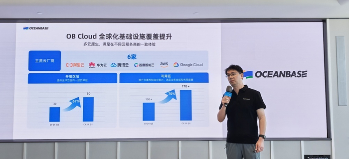 据悉,OB Cloud云基座涵盖了国内外主流的6家云厂商,可以获得开箱即用的云服务。从去年第二季度到今年第二季度,一年里OB Cloud的开服区域从30提升到50,提升了67%;可用区从100+提升到170+,其可靠性和容灾能力大幅度提升。可以在不同的地域、不同的国家、不同的基础设施上,AI应用的可获得性变得更便捷,OB Cloud也能够在各种地域、各种云上为AI应用提供支撑和服务。