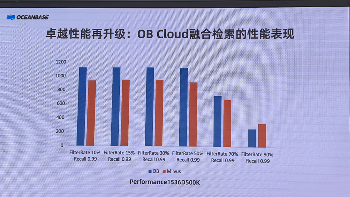 OB和其他的向量数据库还有一个比较大的区别,即从OB整个向量数据库到向量算法全部都是自研的。OceanBase资深技术专家张易称,从整体性能上看,自研的OB Cloud的向量性能已经达到主流开源数据库水平。