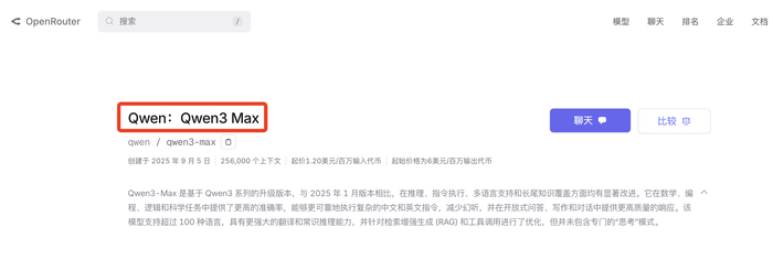 在AI模型聚合平台OpenRoute上,Qwen3-Max的介绍提及:其在推理、指令执行、多语言支持和长尾知识覆盖方面均有显著改进;同时在数学、编程、逻辑和科学任务中提供了更高的准确率。该模型支持超过100种语言,具有更强大的翻译和常识推理能力,并针对检索增强生成 (RAG)和工具调用进行了优化,但并未包含专门的“思考”模式。