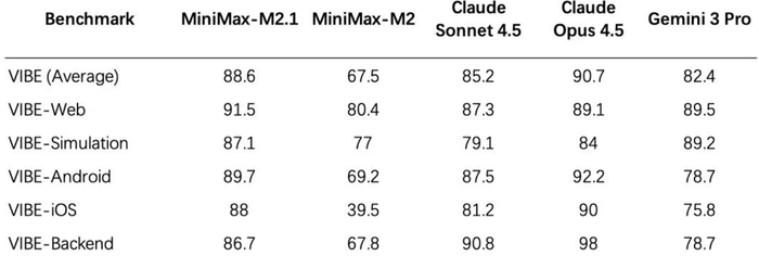 在编程场景,MiniMax M2.1把多语言和App开发作为重点。