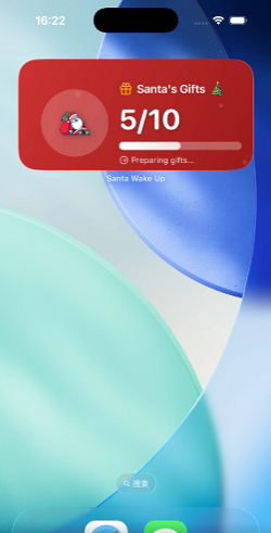iOS开发中,M2.1打造了一个桌面交互小组件,设计了“沉睡圣诞老人”点击唤醒机制,逻辑完整且具备交互动画效果。