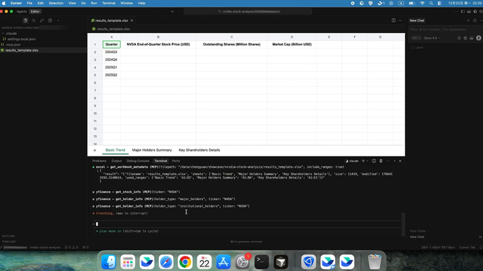 Agent能力还体现在模型的工具调用能力上。下方案例中,MiniMax M2.1能自主调用Excel工具和雅虎财经,完成市场调研数据清洗、分析和图表生成任务。