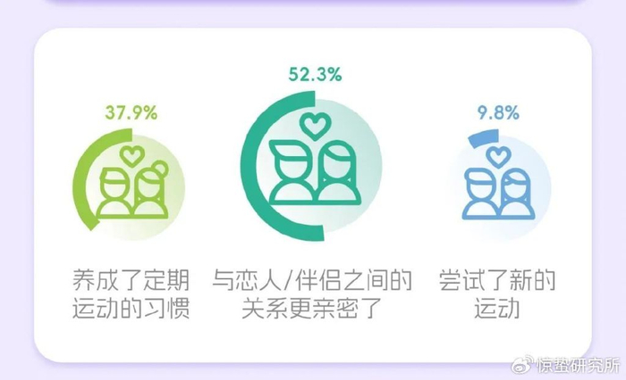 有52.3%的人,在和恋人/伴侣一起运动后,关系变得更亲密了。