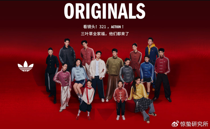 在服饰领域,这一转变尤为明显。广东省服装服饰行业协会数据显示,2024年国潮服饰市场规模超2200亿元,预计2025年将达2500亿元。不同于形式化的简单复刻,如今的国潮服饰更注重传统技艺与现代需求的融合,例如瑞蚨祥的年轻化系列运用非遗刺绣,太平鸟将中式纹样与现代剪裁结合。包括近期,阿迪达斯也结合盘扣、立领剪裁推出了新中式外套,在外网火爆出圈。