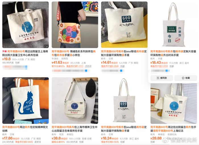 年轻人出门背着“宛平南路600号”的出院留念帆布袋,并不是真的在提示别人自己得过精神病而是一种“自嘲式表达”,把职场焦虑、精神压力变成直白的文字符号,穿出门既是个性宣言,也是找到同频伙伴的社交密码。而社交平台的抽象迷因能快速转化为实体产品,得益于产业带的快速响应,让年轻人“刷到即买到”,把线上的快乐延伸到线下。