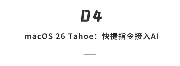 macOS 26还升级了快捷指令功能,在步骤中直接接入了苹果AI,官方举例用户可以创建AI快捷指令来“查缺补漏笔记”,当然目前国行又没戏了。