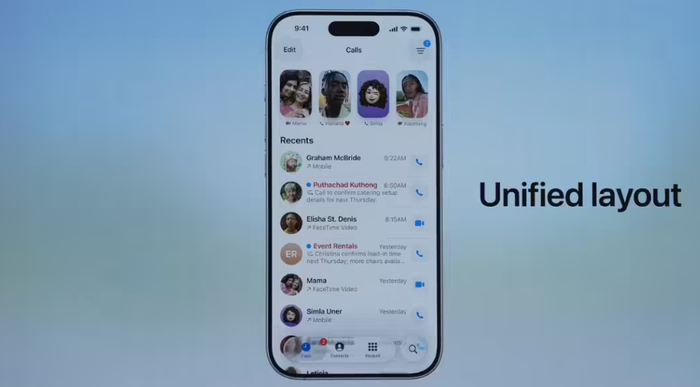 此外新的电话应用会在顶部显示一个收藏夹磁贴设计,相当于增加了“最喜爱的人”的置顶功能。