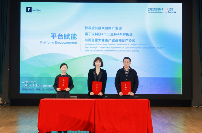 现场亮点突出,诺丁汉科技、十二坐标与东柳街道签署大健康产业园共建框架协议。三方将依托宁波诺丁汉大学在健康科学领域的技术优势,结合地方政策支持与专业服务能力,共同打造大健康产业创新高地,加速技术成果向现实生产力转化。