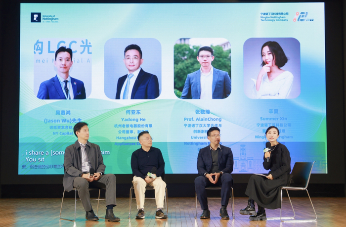 圆桌论坛环节,诺延资本合伙人吴慕鸿、杭州老板电器董事兼副总裁何亚东、宁波诺丁汉大学合作与创新副校长张毓隆教授展开深度对话,从资本、产业、学术多维度探讨科技与产业创新的赋能路径,奉献了一场兼具深度与实践价值的思想盛宴。