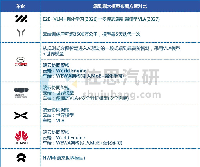 主流车企L3布局采用的端到端大模型方案对比