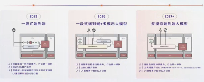 2025 年是 “基础筑基期”:通过落地一段式端到端(E2E)架构,打破传统感知、决策、控制的模块壁垒,实现信息无损传输与全局优化,L3 技术成熟度已达 90% 量产水平。这一步解决了模块化系统 “信息损耗、累计误差” 的核心痛点,为高阶智驾筑牢底层能力。