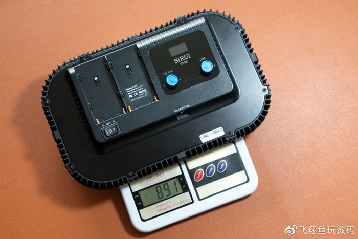 E30B柔光灯单灯重量官方标称是880g,实测重量为891g与官标一致。总重不到2瓶纯净水,拿在手里并不会有太重的感觉。