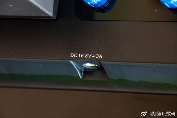在E30B柔光灯背面控制面板的底部为有源供电接口,支持16.8V/3A,最高支持输入功率为50.4W。