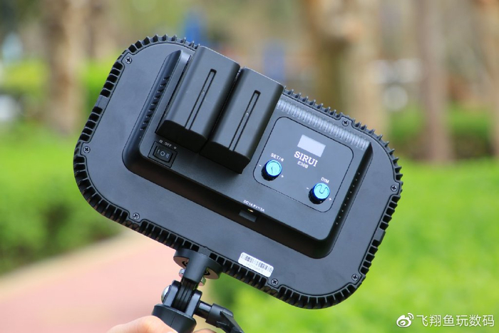 下图是E30B柔光灯安装2块NP-F970电池后的效果。