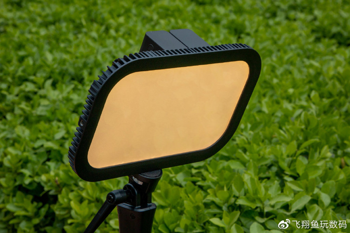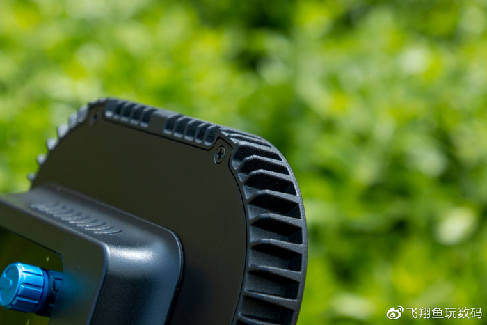 E30B柔光灯灯体边框上均匀分布着鲨鱼鳍状的铝合金栅格,这种设计有利于补光灯使用过程中的散热。