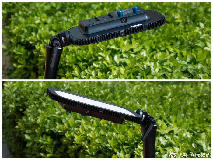 E30B柔光灯的背面结构稍微复杂一些,灯控、拓展等均在背面。背面主体采用黑色磨砂工艺的塑料材质,使用过程中可以有效的防滑。