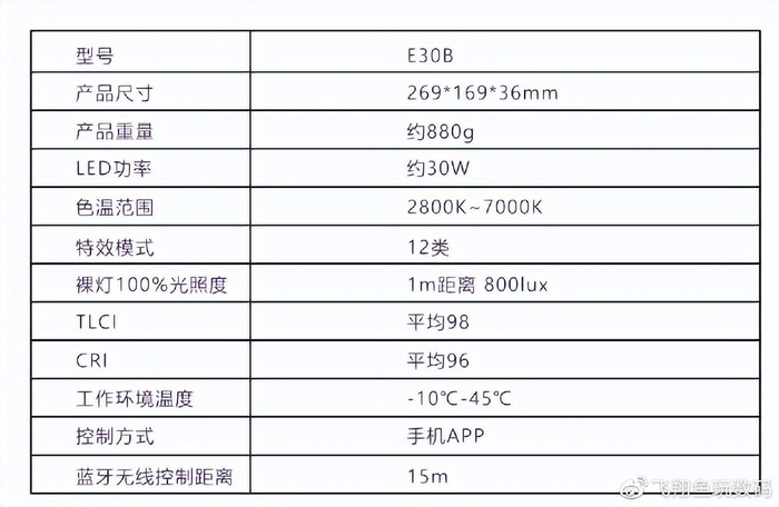E30B这款摄影灯最高功率可达30W,亮度足够高,支持双电源供电模式,携带也非常方便,使用简单,还支持手机APP无线操控,无论是拍摄产品、静物、花草,还是拍摄人像都能胜任,室内、室外全场景均可适用。12种情景灯光特效还可以满足视频拍摄场景灯光效果的需求,是一款非常值得入手的摄影灯。