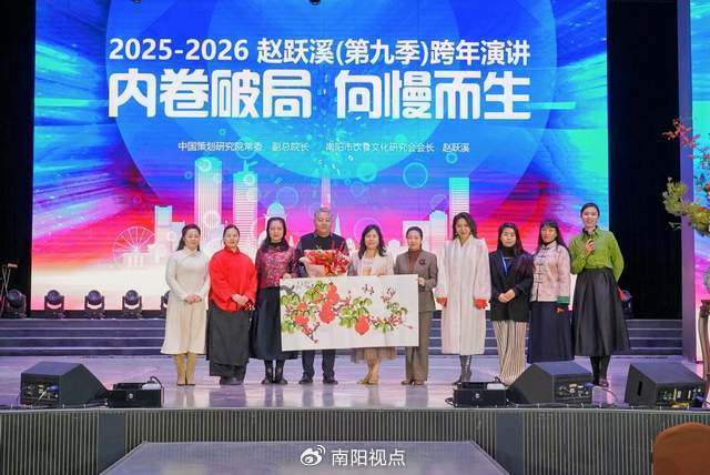 演讲结束,赵跃溪老师为荣誉支持的品牌颁发牌匾,感谢他们对赵跃溪第九季跨年演讲的支持。同时,吴菲老师赠送书画作品、赵跃溪老师的学生、粉丝送上鲜花表示祝贺。最后,部分参加活动的代表走上舞台合影留念,并祝赵跃溪第九季跨年演讲圆满成功、祝大家新年快乐!(钢铁悍马/编辑)