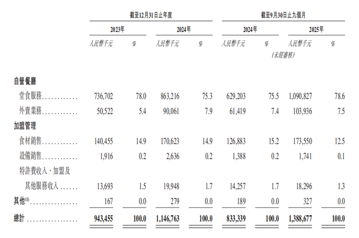 业绩方面,2023年、2024年及2025年前9个月,公司分别实现营收9.44亿元、11.47亿元、13.89亿元,值得注意的是,虽然营收逐年攀升,但利润率有所下滑,招股书显示,2023年、2024年比格披萨期内利润分别为4752万和4174万元,净利润率分别为5.0%和3.6%。