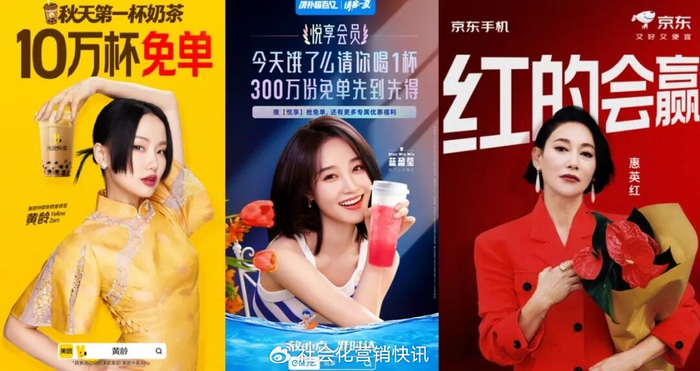 美团x黄龄、饿了么x蓝盈莹、京东x惠英红