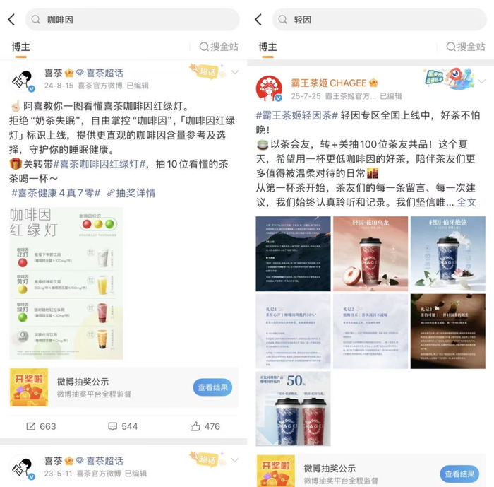 喜茶、霸王茶姬官方微博