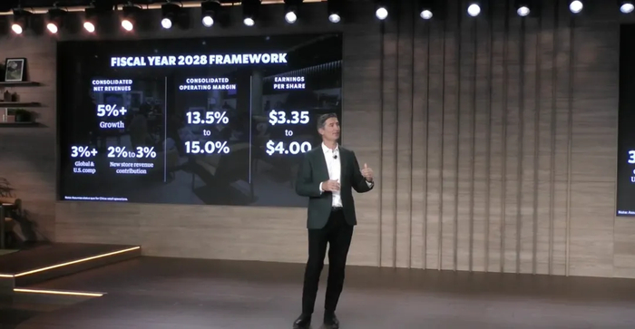 该公司表示,预计在2028财年实现:5%或以上的合并净营收增长,3%或以上的全球及美国可比门店销售额增长,新店贡献2%-3%的合并营收,全球自营及特许经营门店组合净增超过2000家,其中包括约400家美国自营净新增门店,非公认会计准则合并营业利润率13.5%-15%,非公认会计准则每股收益为3.35美元至4.00美元。