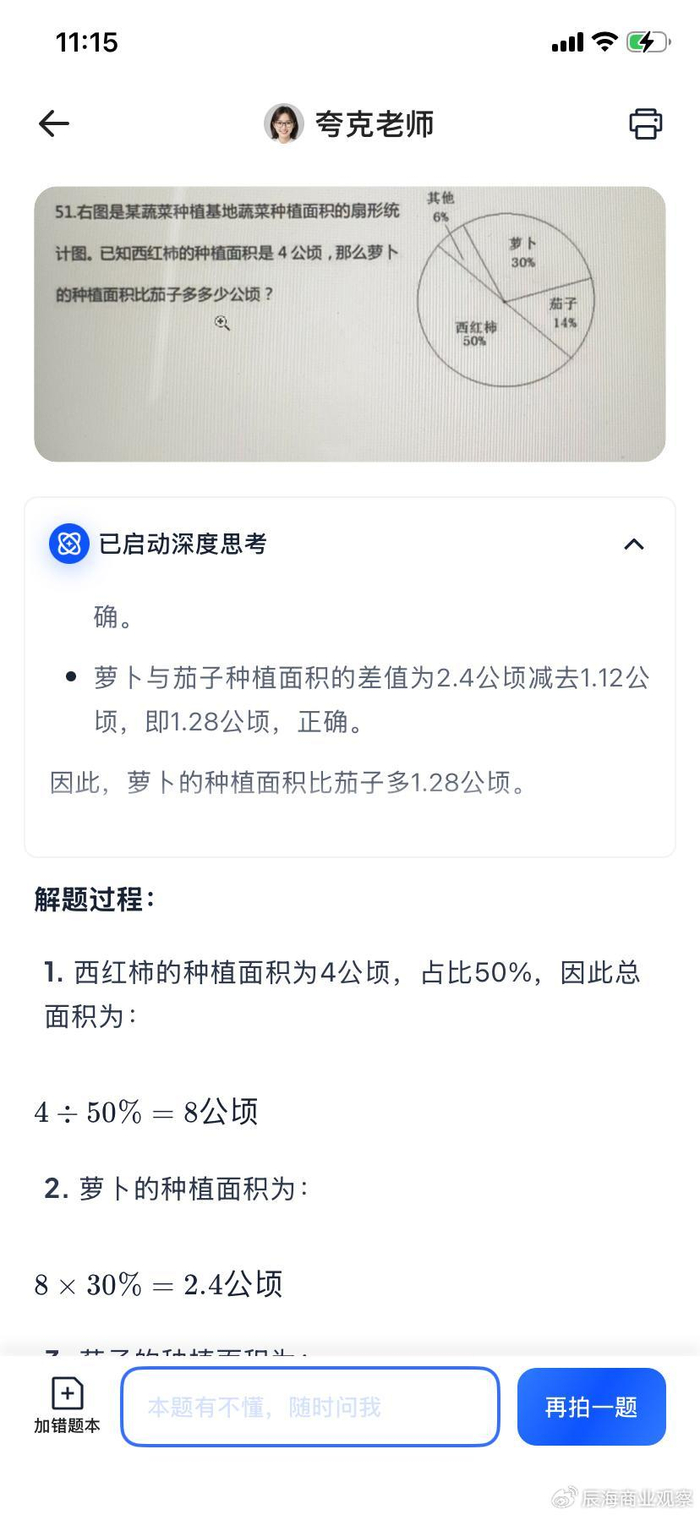 首当其冲的是AI大模型通病式的幻觉问题。《山西晚报》曾用10道典型题目测试6款热门AI产品,结果最高正确率仅80%,最低只有30%,其中部分产品甚至会出现知识点混淆、解题步骤遗漏等低级错误。