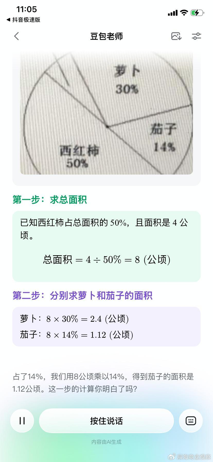 我们将相同的一道小学数学题目给了四款产品,从回答准确率来看,各家都给出了正确的文字答案。