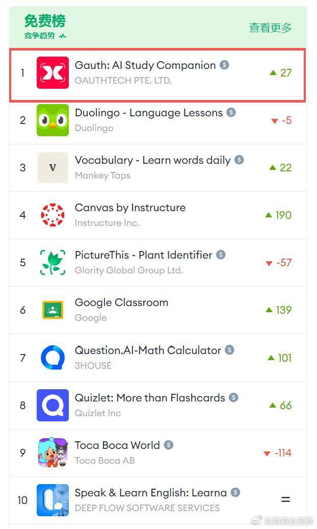 非凡产研,全球及中国 AI 应用榜单(教育类)