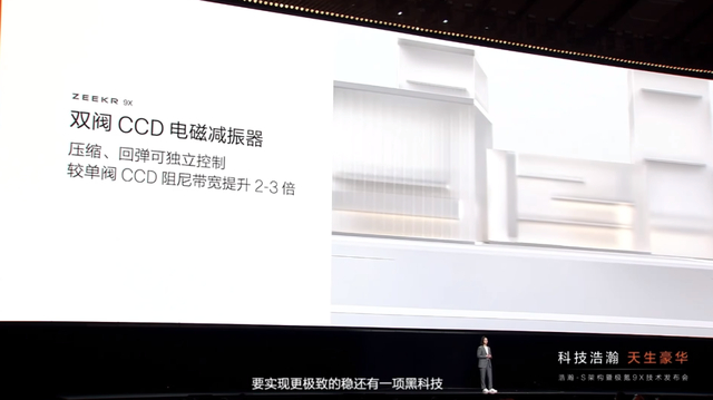 发布会上说的这个阻尼带宽咱们可能听不明白,简单说以前一个电磁阀要么压缩、要么回弹,现在两个阀一边控制一个,能盘旋的余地就更多了。