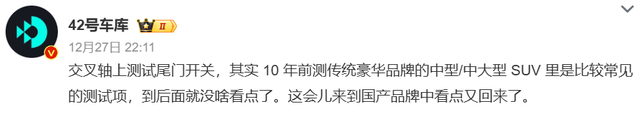 但如果你是从油车时代就开始关注汽车的老车迷,那你应该知道,交叉轴测关门这玩意在宣传口径里,基本已经和汽车质量检验器划等号了。