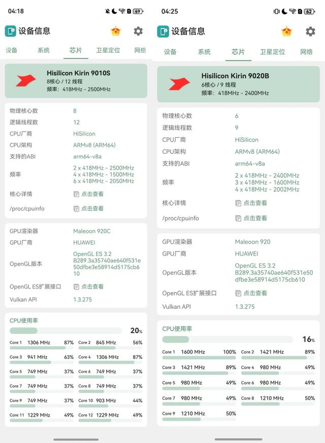 因为手头暂时没有麒麟 9020 的机器,所以托尼就暂时先用 Mate 70 Air 上的那颗 9020B 做了下对比,你可以把它理解为麒麟 9020 的青春版。。。
