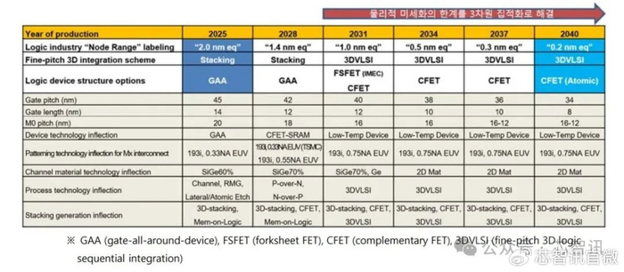 从时间轴来看,路线图预期2025年底左右半导体制程将进入2nm时代,并于2031年前后推进至1nm级;到了2040年,逻辑电路线宽将进一步缩小至0.2nm。尽管0.75NA EUV光刻机可在2030年前后带来更细线宽,但基于光刻的物理微缩将逐步趋于饱和,制程竞争的重心势必转向芯片构架与整体系统设计。