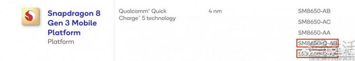 最近有好事者发现,高通在官网上架了第三代骁龙8的两个细分型号SM8650-Q-AB和SM8650-Q-AA,从而使得整个“第三代骁龙8”家族的细分产品达到了5款之多。