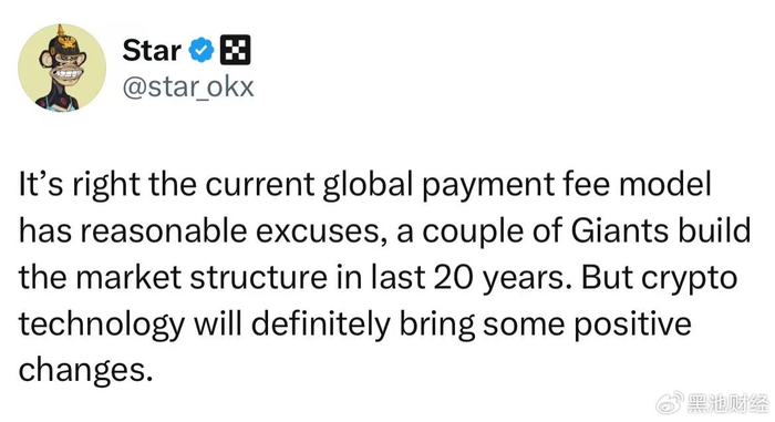 徐明星表示,加密技术肯定会为全球支付模式带来积极变化。过去20年里,一些支付巨头构建了当前的市场机构,并向商家收取2%-3%的费用,用于补偿信用风险以及支付信用卡奖励。