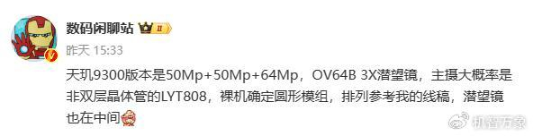 另外,日前,@数码闲聊站 还分别确认了疑似OPPO Find X7两款机型的配置参数,据其称,该机标准版后置5000万像素主摄、5000万像素超广角和6400 万像素潜望长焦,其中主摄大概率是非双层晶体管的索尼LYT808传感器,3倍潜望式长焦采用OV64B传感器,裸机确定圆形模组,潜望镜在中间。
