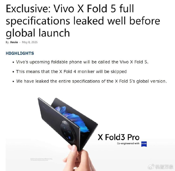 日前,数码博主“数码闲聊站”爆料称,“vivo X Fold5暂定本月登场,支持90W有线充,有IMX882潜望镜和无线充的骁龙8G3轻薄大折叠。同期备案一个vivo Pad5e,12.1"LCD骁龙8s Gen3高刷大平板;一个TWS Air3 Pro,真无线旗舰降噪耳机,蓝系全家桶也开始了”。从爆料看,基本再次印证了此前网间关于vivo X Fold5大折叠新品的爆料。