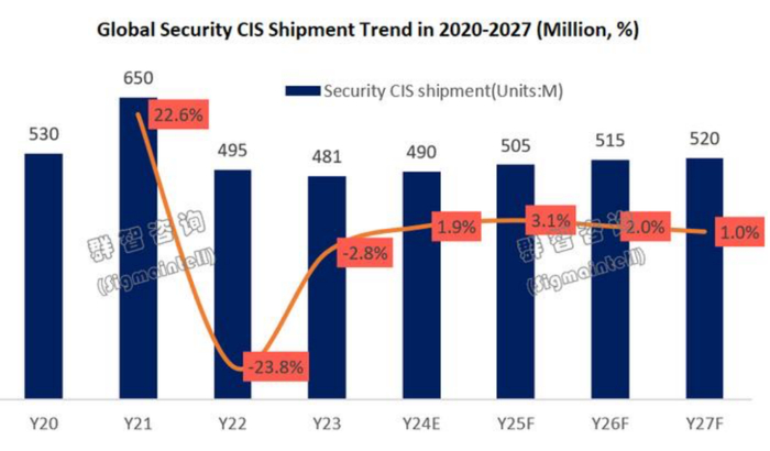 根据群智咨询(Sigmaintell)《全球安防图像传感器产业追踪报告》预测,2024年全球安防CIS出货数量预计将达到4.9亿颗,实现同比增长约2%。