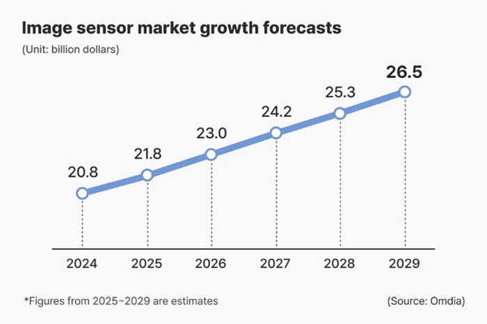 据 Omdia 的数据,全球互补金属氧化物半导体 (CMOS) 图像传感器市场规模预计将从 2024 年的 208 亿美元增长到 2029 年的 265 亿美元。