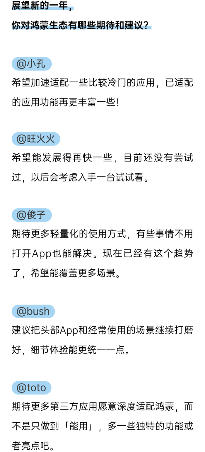 这份接纳也体现在他们对鸿蒙生态未来的期待上。在他们的眼中,鸿蒙的未来还有着无限的可能。