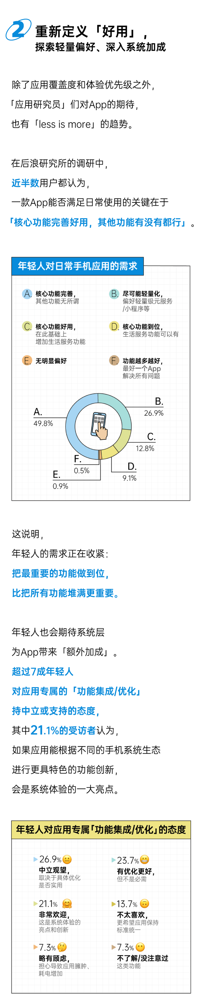 随着应用生态日益丰富,年轻人对App的要求也变得愈发「挑剔」,当我们回到最初的问题:「年轻人到底需要什么样的App?」时,答案似乎也逐渐清晰——他们既要丰富,也要优质。