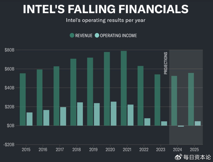 市场份额的流失直接反映在财务数据上。过去四个季度,英特尔代工部门营收近180亿美元,占公司总收入约三分之一,但亏损高达130亿美元,成为公司盈利的最大拖累。2025年第一季度,英特尔代工业务亏损仍高达23亿美元。尴尬的是,曾经的行业小弟英伟达则凭借AI加速芯片占据了全球80%以上的AI训练市场。
