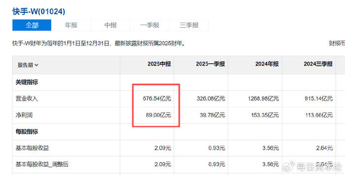 多重麻烦背后是快手难以掩饰的增长疲态。2025年上半年,其营收676.54亿元,同比增长12.04%;净利润89亿元,同比增长9.9%。请注意,2024年同期快手净利为80.98亿元,同比暴增1234.1%,显然增速大幅放缓。
