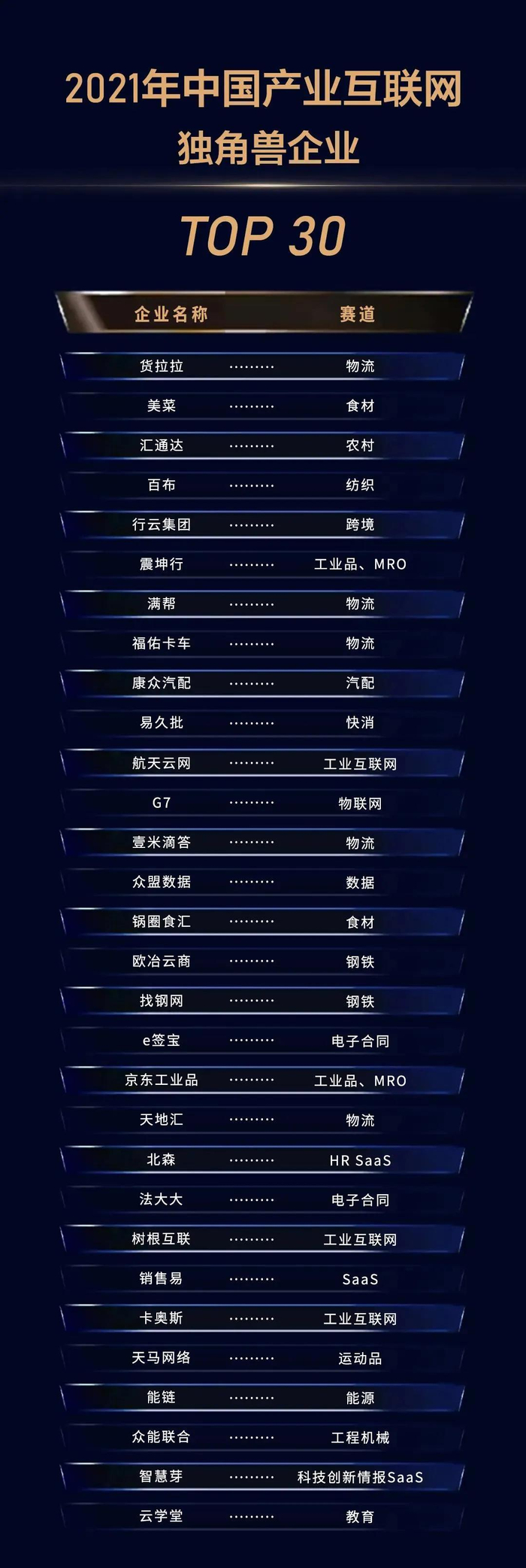 5月21日,由B2B内参、产业互联网大视野和产业互联网雄鹰会共同主办的2021年中国产业互联网夏季峰会圆满召开。会上,行云集团入选2021年中国产业互联网独角兽企业TOP30。